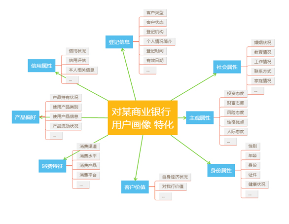 本项目的合作对象为商业银行,因此将从银行客户的基本信息,行为习惯,业务信息等角度出发,从现有的用户画像框架中选取合适的标签体系,作为将来业务分析以及模型训练的基础。