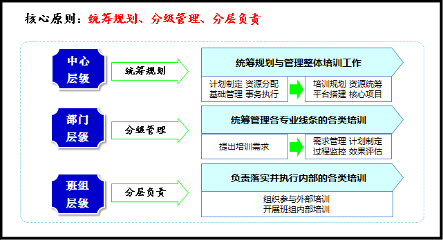 首先,在每年底针对关键人群和各专业部门做需求调研,充分考虑各专业线条、各岗位的培训需求,摸底并了解员工的情况,进一步整合培训需求;其次,在第二年年初根据各类岗位人员的培训需求,结合公司的发展战略和生产经营情况,分层分级分岗位线条,制定年度整体培训计划;再次,整合后的培训计划报上级领导批准,依据培训形式(外训、内训等)来开展培训项目和课程的采购工作;然后,按照采购结果安排项目或者课程开展的时间,并组织学员进行培训课程报名;接下来,是启动并组织实施全年的培训课程和项目;最后,对培训效果进行科学评估,从训后员工工作行为改变、业务验收考试、培训满意度和员工能力发展等各方面建立全方位的培训效果评估体系,评估结果将应用到下次的培训计划制定中,完成培训计划的持续优化,形成培训管理的闭环运作。