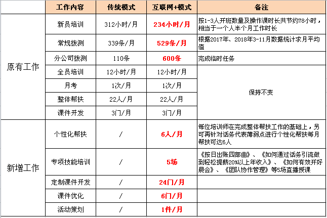 1)2018年3月工作内容由7项增加到12项,其中现场授课时长与去年同比节约25%,拨测量与去年同比增加56.05%,课件开发及优化量与去年同比增加30门/月(表1)。