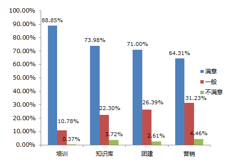 3)员工对培训支撑工作的满意度有明显提升,在部门员工满意度调查中,满意度达88.5%,位居支撑团队首位(表3)。