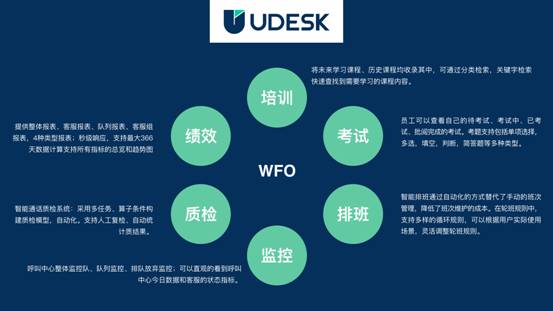 劳动力优化管理系统,简称WFO(Workforce optimization),通过提供关于劳动力绩效的关键数据来支撑业务,是分析、管理员工和运营效率的一整套解决方案,实现客服团队培训、考试、排班、监控、质检、绩效全流程智能管理,优化整个劳动力生命周期,帮助企业降本增效,精益管理。