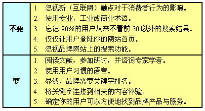 服务(搜索)既销售。简单的逻辑推理可知,如果用户不能在你的网站上方便地找到需要的产品或者服务,就会选择别的地方完成交易。增强品牌网站内的搜索功能需要采取的策略有: