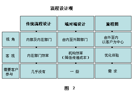 把端对端的理念融入流程设计中,是一种很大的进步,尽管对于降低了传递成本——内部流程传递时产生的成本,似乎过于先进。因为传递过程中总会引起摩擦。解决的方法就是要考虑创建从行动开始的时刻到正式结束的时刻更为有效运营的模式。这必然要跨越多种部门,也暗示了流程拥有者/负责人需要是跨部门、多纬度的,或提升一、两个级别。多数公司会非常清楚地理解如何开发端对端流程,因为公司完善端对端流程设计的能力时,他们已开始注意到由外至内的方法需求的紧迫性。