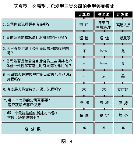 • 图4诠释出天真型、交易型、启发型三类公司的典型答案模式。