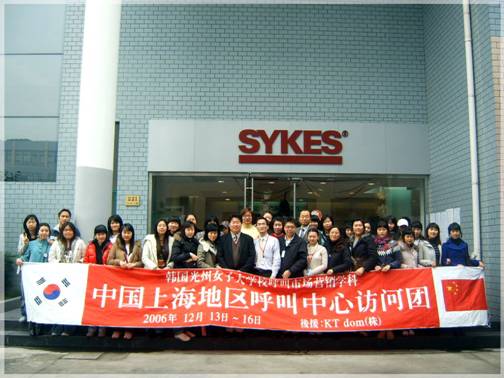 2006年12月14日上午,韩国光州女子大学呼叫市场营销系30多名大学学生 在郑成教授等的带领下,专程来沪参观访问赛科斯(Sykes)公司。韩国光州女子大学是韩国第一个设立呼叫市场营销专业的大学,该专业为四年制本科,学生毕业后主要从事客户服务行业的基层管理岗位工作。