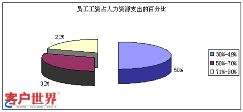 在员工培训方面,73%的企业的员工培训费用占人力资源总开支的1%到10%。