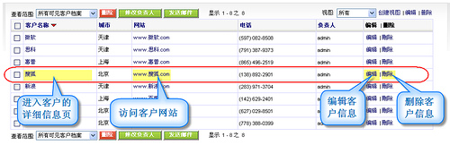 我们可以在客户列表中,找到一条客户信息,开始进行相应操作。