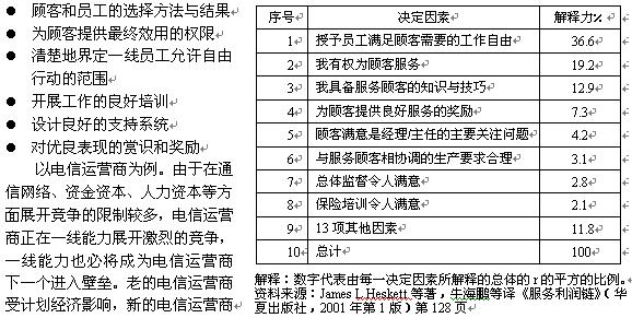 有米,还要有巧妇。能提供好产品的企业是令人尊敬的,不会吆喝也不值得提倡。顾客的价值要通过一线员工提供,在顾客不知道也不关心科龙拥有亚洲一流的模具制造厂和空调生产线,而只关心如何以合理的价格获得室内温度调节的服务,一线员工能够帮助客户明确、选择、及时满足价值需求。研究表明,服务能力每提高两个百分点,一线员工对他们工作总体满意度的评价就会提高近一个百分点。某人寿保险公司调查(如图表1)表明一线能力主要包括以下几方面: