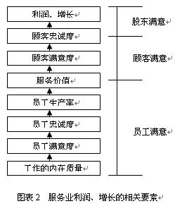 詹姆斯•赫斯克特(James L.Heskett)等学者通过多年的研究证明在服务业存在八要素的正相关关系(如图表2),八个要素由下至上形成促进关系。实践中,我们发现许多台资企业的工作内在质量高、员工生产率高,但员工满意度、忠诚度则偏低;同样有不少国企的员工满意度、员工忠诚度较高,但他们少有取得令人满意的增长和利润。企业要在其中一个