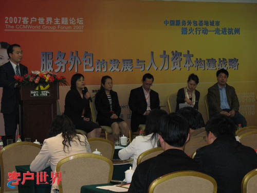 2007年4月24日,杭州。由客户世界机构主办的主题为“服务外包发展与人力资本构建战略”的主题论坛今天在杭州举行。作为客户世界年度系列论坛——中国服务外包基地城市播火行动中重要的一站活动,本次论坛得到了杭州市信息化办公室、杭州市外经贸局、杭州经济技术开发区、新加坡腾飞集团等相关单位的高度重视;以杭州为基地的各大呼叫中心运营机构的主要负责人悉数出席,为杭州服务外包产业的发展献计献策。