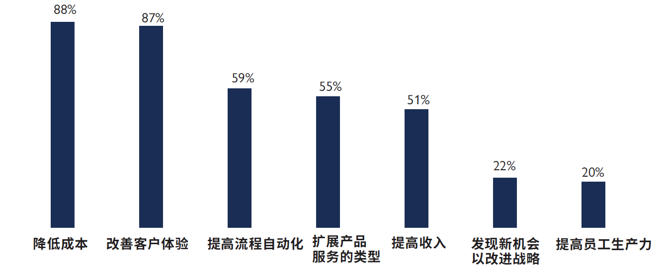 图2 来源:I D C 认知/ 人工智能应用调研,2 0 1 8(n = 279)