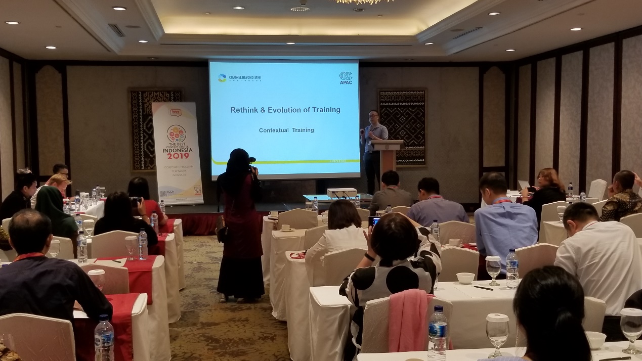 国际事业部赖总监代表诚伯公司参加竞赛,并发表主题为“Rethink & Evolution of Training”的全英文竞选演讲。演讲赢得了评委和现场观众的热烈掌声。演讲结束后,来自泰国、印尼、新加坡和Genesys的4位评委专家对本次演讲给予充分认可,针对演讲主题与演讲代表做深度交流。