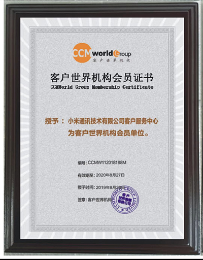转载请注明来源:小米客服中心成为客户世界机构2019/2020年度企业会员