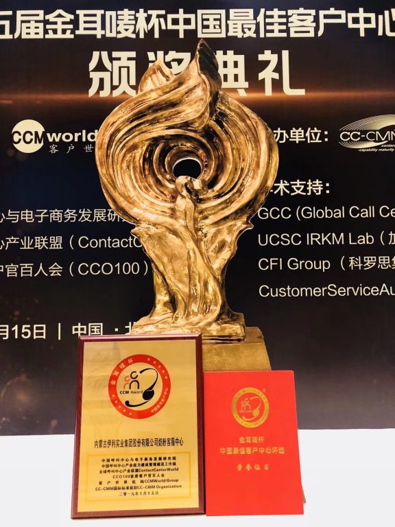 伊利奶粉客户服务中心荣膺2019“金耳唛杯”中国最佳客户中心殊荣