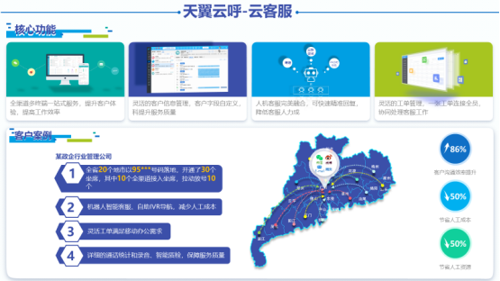 天翼云呼是广东电信基于通信技术、云计算、大数据及智能应用,以语音和互联网接入为手段,结合企业需求形成全渠道、全触点、全媒体的云智能呼叫中心平台。其不仅作为企业营销服务工具,同时也是企业通信领域的重要组成部分。