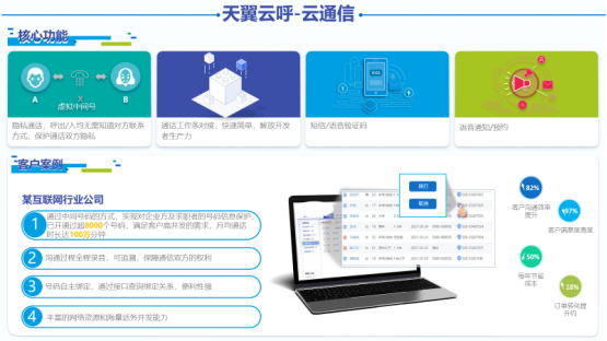 具备隐私通话、通话工作调对接、语音验证码、语音通知/预约等核心功能,拥有API及SDK接口方式、丰富的网络资源和海量并发能力等稳定可靠的产品优势,为某互联网行业通过中间号码的方式,实现对企业方及客户方的号码信息保护,开通超8000个号码满足客户高并发的业务需求,沟通过程全录音、可追溯,保障通信双方权利,有效提升客户沟通效率82%,客户满意度高达97%,每年节省50%的成本开支,订单转化率提升了18%。