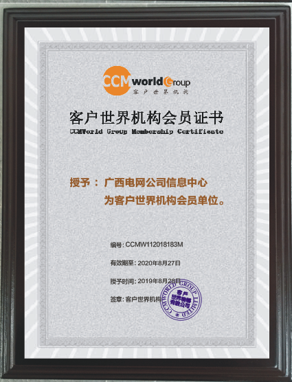 广西电网公司信息中心成为客户世界机构2019/2020年度企业会员