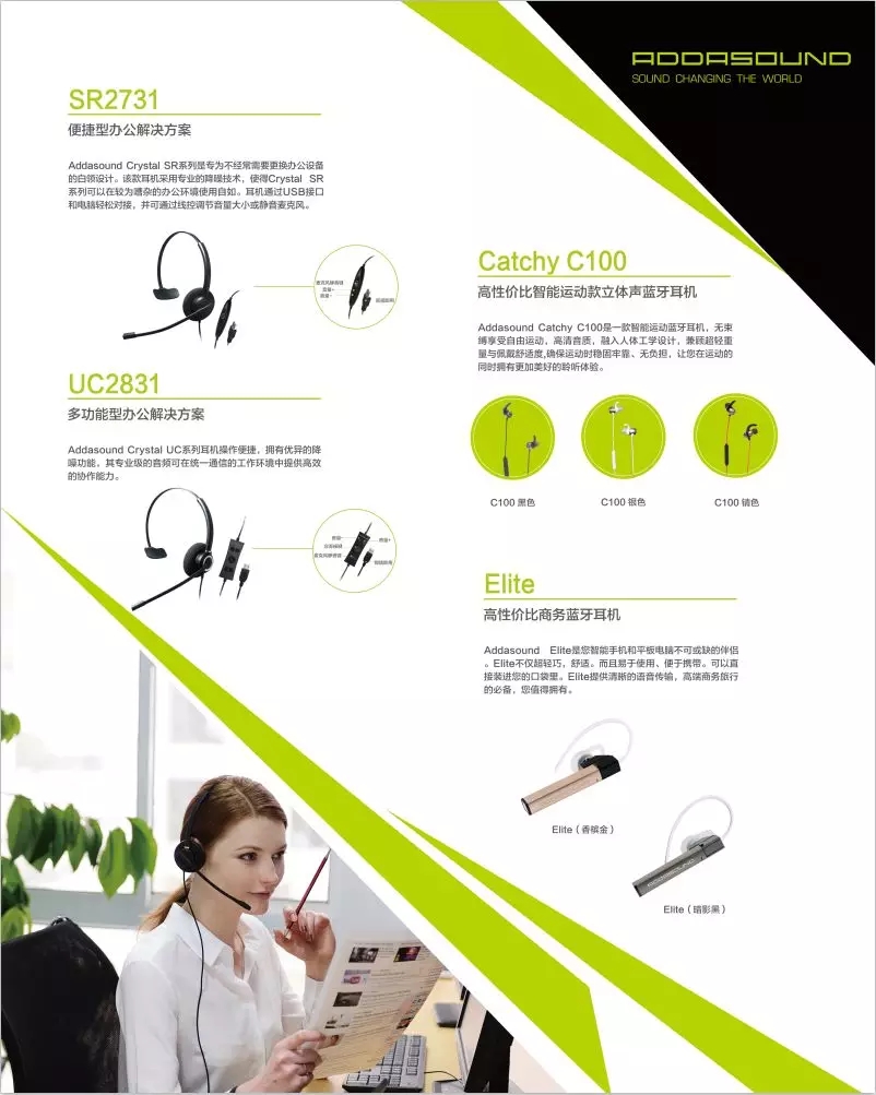 艾德声(ADDASOUND)的目标是为用户提供最优质的产品和服务,让世界各地的移动用户、办公室和联络中心员工能够轻松地通信。将科技与人文完美结合,ADDASOUND的产品能够实质性地改善他们的工作方式,增强客户的能力和信心,“让沟通更有魅力”。