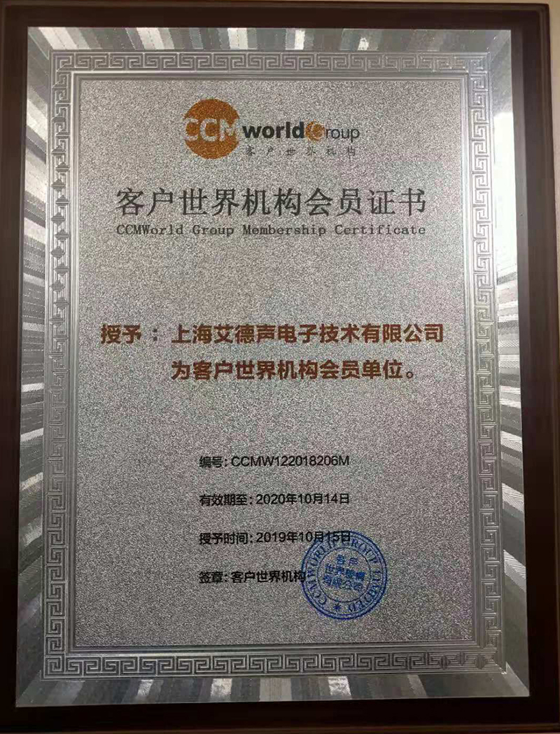 2019年10月15日,借举办“2019第十五届客户世界年度大会”的契机,上海艾德声电子技术有限公司正式成为客户世界2019/2020年度企业会员。