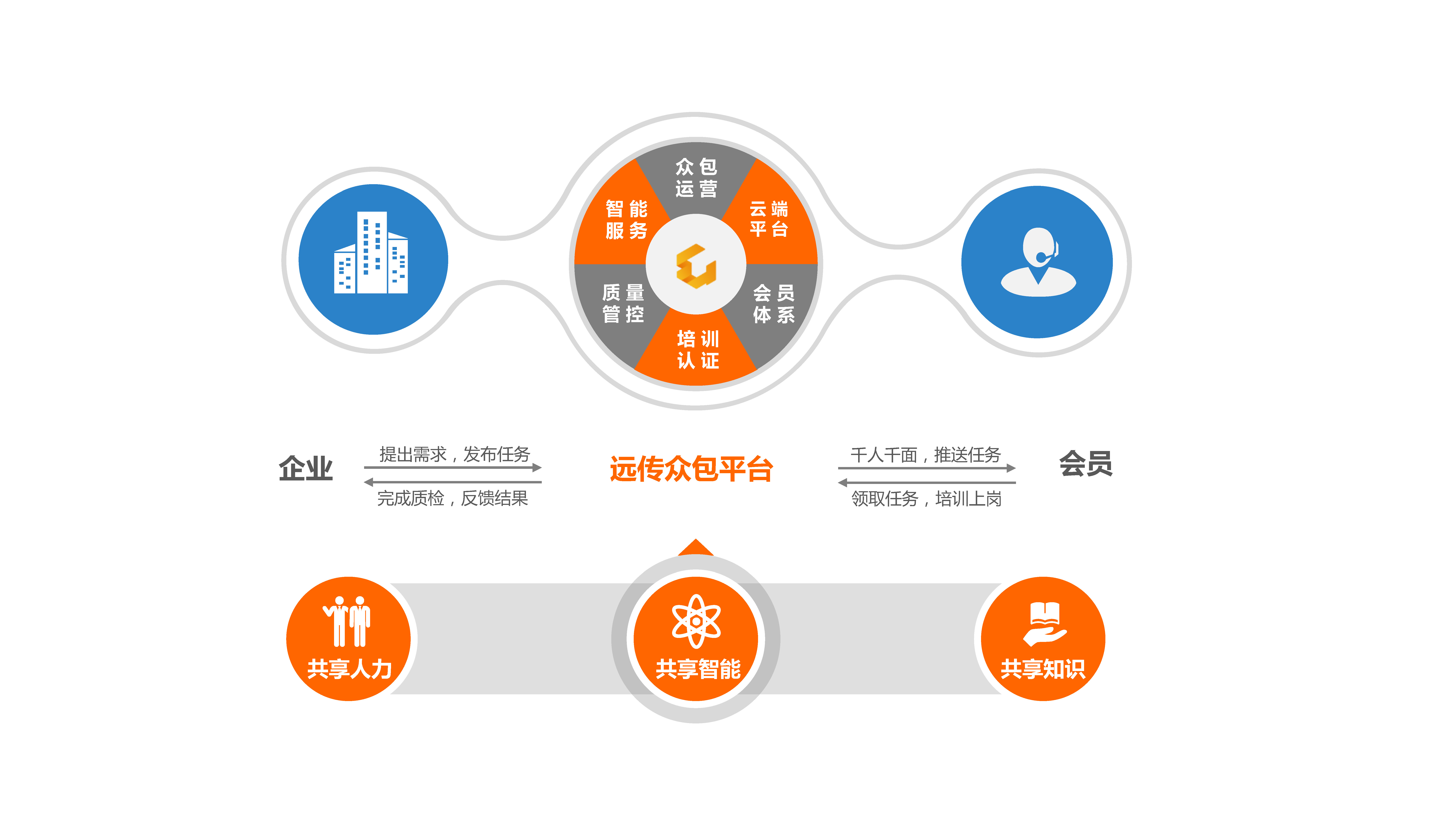 远传天堂声谷云众包基于十余年客户服务管理和产品研发经验,倾力打造了专注于客户服务领域的聚类共享平台。平台主要围绕共享经济和零工经济,实现了市场人力资源与企业客服需求的高低峰匹配,为企业提供更灵活的客户服务。