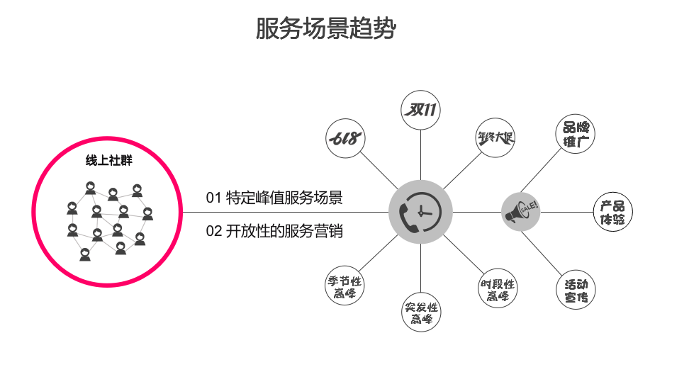 通过长期的实践摸索,我们总结了有两类服务场景比较适合客服众包。一是特定峰值服务场景,包括双11、618、大促、突发性高峰业务、服务订餐类业务,众包模式能够降低高峰期的企业成本,提升服务效率。二是开放性的服务营销,例如帮助一些客户进行品牌推广、产品体验、活动宣传、客户回访等工作。