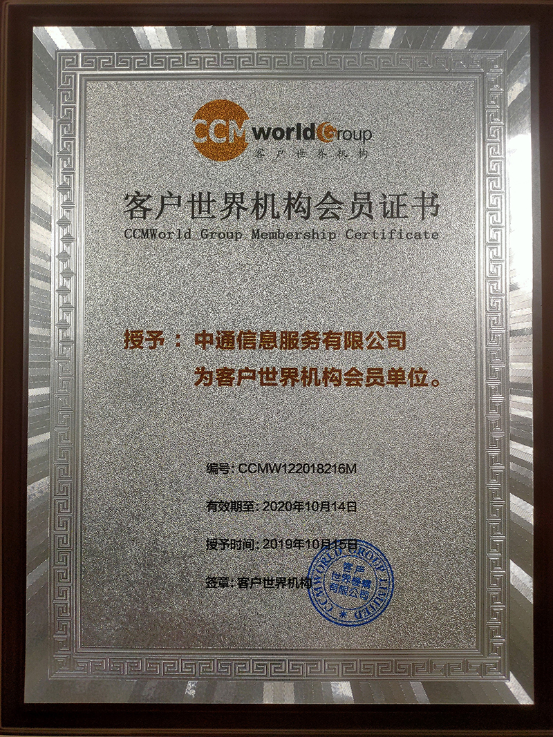 中通信息服务有限公司成为客户世界2019/2020年度企业会员