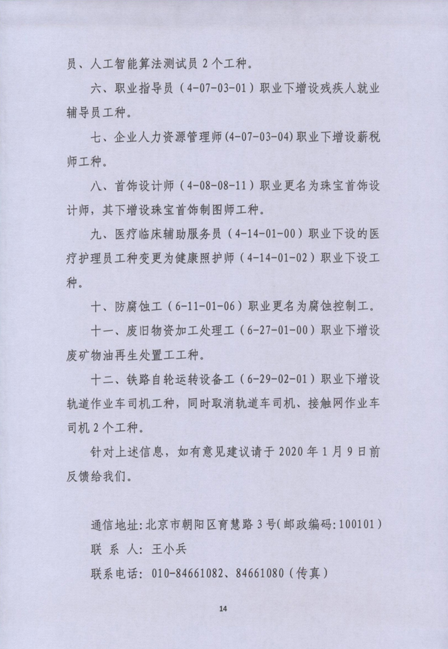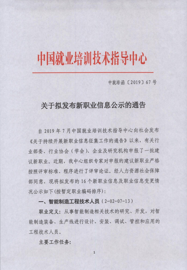 2019年12月30日,客户世界消息:今天,中国就业培训技术指导中心和人力资源和社会保障部职业技能鉴定中心发文《关于拟发布新职业信息公示的通告(中就培函〔2019〕67号)》,发布16个新职业信息及职业信息变更情况,人工智能训练师和全媒体运营师榜上有名。