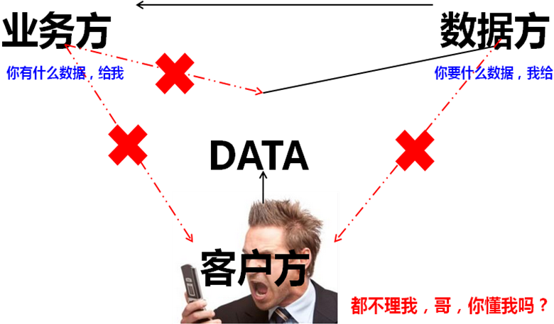 于是乎,业务方很信任地向数据方高呼“你有什么数据,得出什么结论,给我,立马用!”,数据方也很自信地回应“你要什么数据,要什么结论,我给,立马传!”。