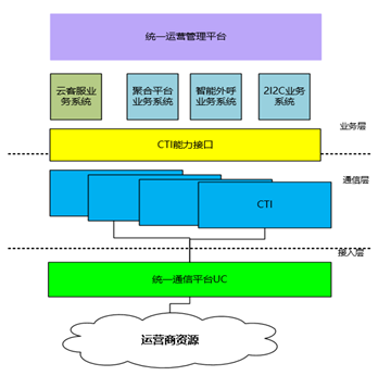 通信层主要是负责呼叫中心的逻辑处理,包括呼入、呼出的路由、录音、坐席的接续等呼叫处理的工作;通信层开放接口给业务层支撑业务请求及回报业务结果;