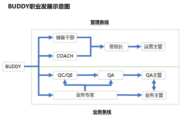 BUDDY是新员工成长的纽带。但是,对于BUDDY本身,除了付出自己的知识和热情外,在双轨制下,BUDDY个人的成长也有清晰的方向。