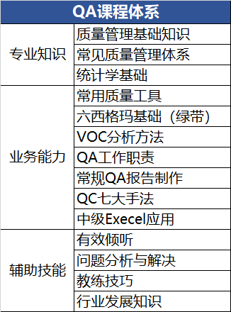 成为质量控制工程师后,要想继续升级为质量管理专员,就不是单靠多听录音,多做员工辅导就能升级的。对于质量分析专员来说,其岗位核心是分析两个字。所以,为了培养合格的质量分析专员,我们为质量控制工程师们制定了专业的晋升课程(如图4),只有完成对应课程的学习和实践练习,质量控制工程师才有机会真正成为质量分析专员。