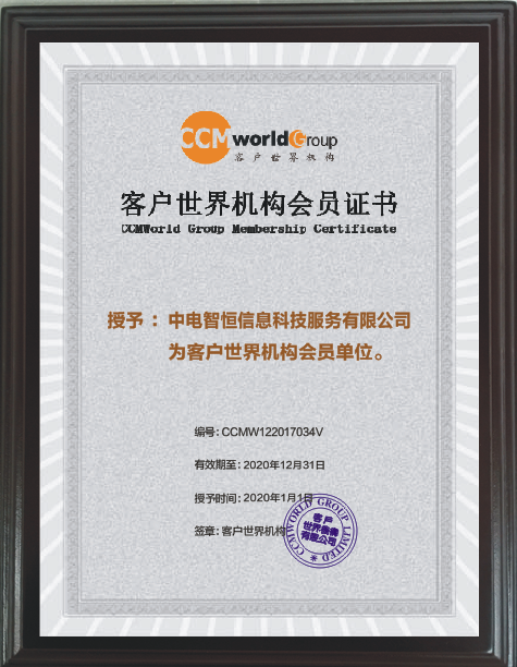 2020年1月14日,客户世界消息:今天,中电智恒信息科技服务有限公司(原江苏智恒信息科技服务有限公司)正式成为客户世界2020/2021年度企业会员。