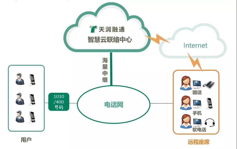 ◆热线号码接入:具备400/1010/95热线号码的客户可向运营商申请,将该号码转接到天润融通呼叫中心平台。或者,天润融通协助客户实名制办理新的热线号码(固话、400、1010号码等)。