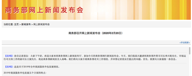 2月20日,客户世界消息:在商务部网上新闻发布会中,商务部新闻发言人高峰介绍了2019年全年我国服务外包发展情况,具有五个方面特点。