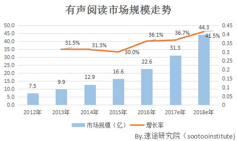 六年前,有声书的市场规模仅有7.5亿,当时智能设备尚未完全普及,在线音频平台仍然是新生儿,市场上也都是免费午餐,且盗版非常猖獗。