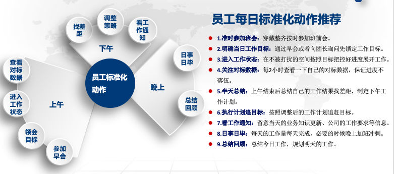 为了便于员工执行,我们可以根据业务规律,帮居家员工按照时间轴梳理出标准化动作,便于全员行动,步调一致,展开工作(图1)。