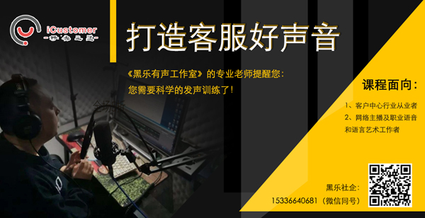 作为一名客服,你是不是接电话久了嗓子就累、会疼或咽干多痰呢?你是不是说话多点儿就需要抱着大杯子拼命喝水以减弱嗓子的干涩、灼热感呢?你是不是一直嫌自己声音太小、音色暗淡、声音不够有磁性、不够圆润、明亮、浑厚、从而不受客户的喜欢呢?你是不是因为每天大量的电话,一直被咽炎、声带小结、息肉等咽喉疾病所困扰呢?如果你的答案是肯定的话,那么《黑乐有声工作室》的专业老师提醒您:您需要科学的发声训练了!