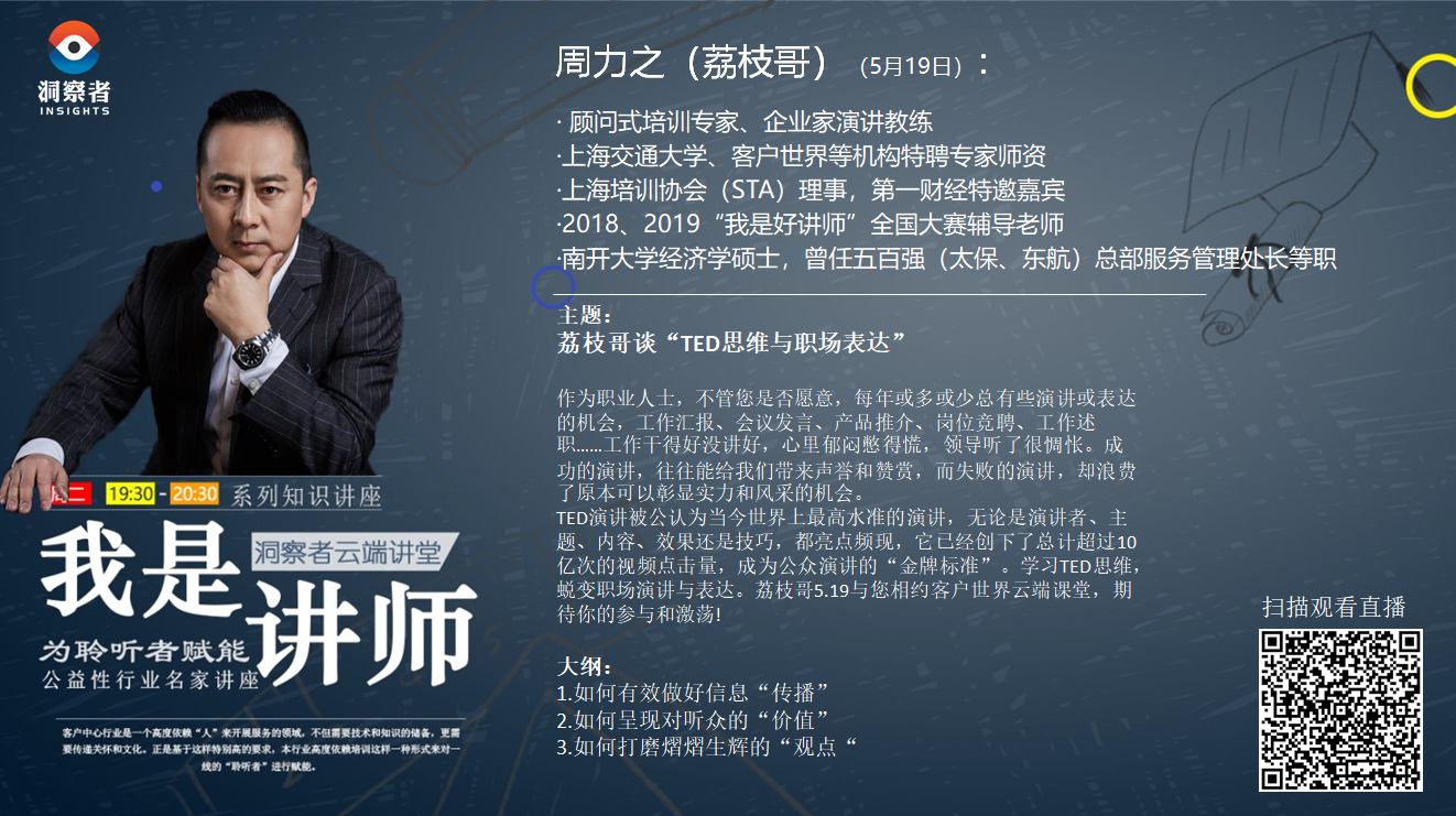 我是讲师:荔枝哥谈“TED思维与职场表达”(5.19-洞察者云端讲堂)