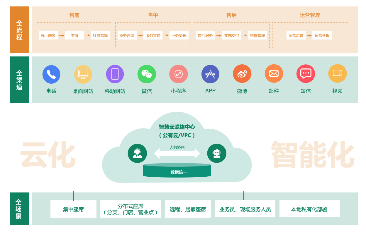 传统的客户联络方式,以线下语音为主、以人工为主、以集中式的“客服中心”为主,面对企业的变革存在诸多不适应的问题。