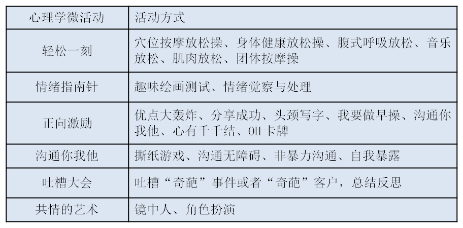 2.心理微活动设计 鉴于“业务知识宣贯”和“班会总结”会涉及到业务专业知识的学习和更新,