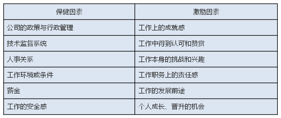 大家可以发现,以留住员工为目的的保健因素,是以金钱、利益等物质因素为主的;而以更好的发展、激励员工为目的的激励因素,则是以荣誉、情绪、自尊等精神因素为主的。