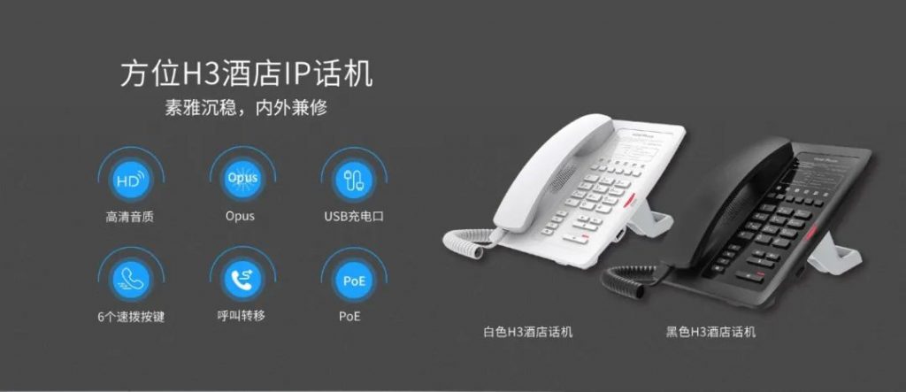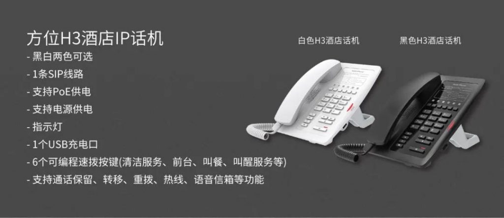 方位推出全新白色话机旨在让客户在产品选型时拥有更多的选择。方位H系列新品外观优雅,功能强大,性价比高,不仅可以满足酒店的需求,还适用于丰富的应用场景。