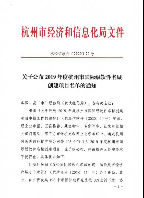 杭州市国际级软件名城创建是助推数字经济发展的新引擎。为深入贯彻落实“八八战略”,全面推进数字经济发展,加快“三化融合”进程,根据《工业和信息化部、浙江省人民政府、杭州市人民政府关于协同开展国际级软件名城创建工作的合作协议》和《浙江省人民政府办公厅关于进一步加快软件和信息服务业发展的实施意见》精神,杭州市经信局每年统筹安排一定资金重点支持软件和信息技术服务业的技术研发、应用推广、标准制定等八大类别。