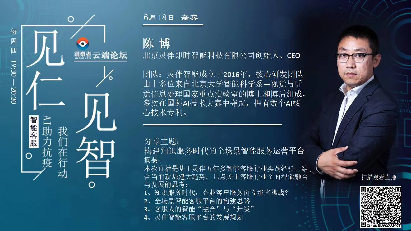 转载请注明来源:见仁见智:北京灵伴即时智能科技有限公司创始人、CEO陈博(6.18-洞察者云端讲堂)