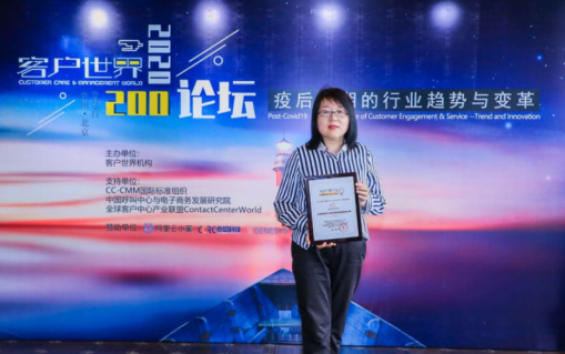 transcosmos China联络中心事业部部门总监黄文波女士代表公司出席6月9日的颁奖盛典并领奖