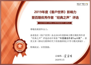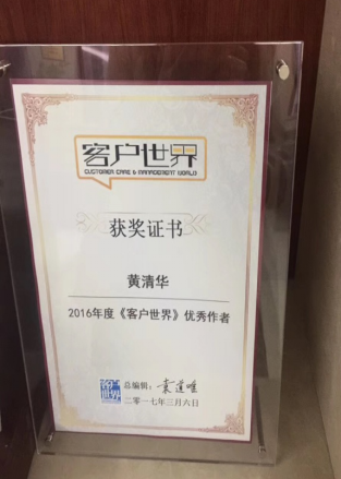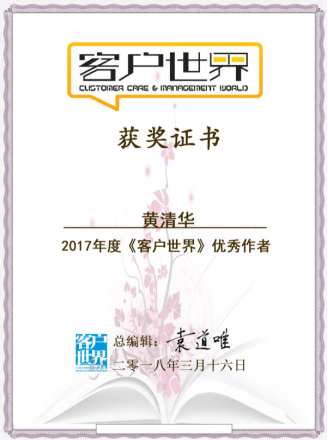 最初自己也只是安静地做一名《客户世界》的忠实学习粉丝,慢慢地,也期待自己能够像杂志的作者一样,把自己积累的一点行业管理小经验分享出来,萌生这个念头很长一段时间却一直未行动,始终觉得在行业大咖面前自己还是菜鸟一枚,分享恐怕只会贻笑大方,分享似乎成为了自己的一个心愿。终于在2011年底,我鼓足了勇气,抱着尝试的心理,花了好几天的时间,把自己在客服班组长管理中的一个小课题研究,写成了一篇文章《基于班组长工作职责的客服中心核心工作内容研究》,当时不记得改了多少遍,才小心翼翼地发到了编辑部邮箱,没想到却得到了编辑的极大鼓励,这也成了我在《客户世界》杂志发表的处女作,自此之后,我信心大增,在领导和杂志编辑的鼓励下,不断在工作中钻研和思考,从杂志中汲取更多的养分,持续提升自己的专业能力,也把个人实战经验和对行业管理的一些思考进行分享。从2016年至今,我先后在《客户世界》发表了《全过程在线服务运营规划及管理体系探索》、《基于MOT和情感支撑管理模型的员工敬业度提升》、《移动互联网时代下的客服班组JIT学习模式探索》等近30篇客户服务管理方面的文章,也连续4年被评为《客户世界》的优秀作者。于此同时,我也带领和鼓励我的团队,把好的管理经验分享到杂志中,我非常享受这个过程,享受分享过程中给自己和团队带来的成长。