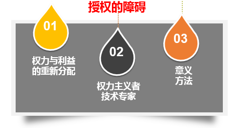 授权的障碍主要包括两个方面:第一,授权并不是只要了解和掌握授权方式就能够顺利进行,许多组织的管理者和员工都非常清楚授权的意义和方法,但还是无法恰当地授权。究其原因,授权意味着权力与利益的重新分配,在某种程度上,授权会使既有权力的掌握者和既得利益者感到失落。并且授权是对个人能力的考验,需要由组织的体系架构进行保障,而组织中的人员配备和结构特征都有可能导致授权障碍。第二,授权是否有效,能否真正发挥作用,还会受到很多因素的制约。其中以管理者的心态影响最为突出,有两类管理者类型是不利于工作的:一是权力主义者,喜欢控制一切,不喜欢下属超越,一旦没有工作干,就会惶惶不可终日;二是技术专家心态,以掌握某一项技术为荣,认为自己做可能更快。对自己的管理角色的定位不准确,忘记自己应该做的是计划、组织、协调、领导和控制,而不是把精力分散到一些具体的事情上(图1)。