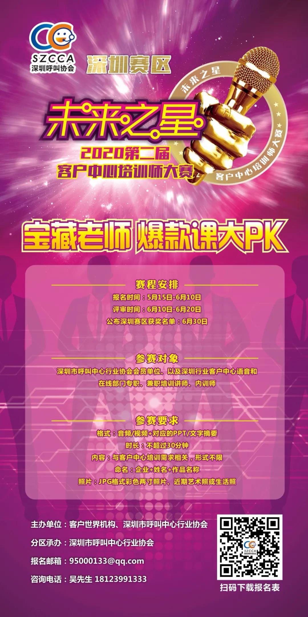 未来之星2020年客户中心培训师大赛,深圳赛区宝藏老师爆款课PK赛,自5月初拉开序幕以来,协会组织成立组委会及评委会、行业宣传、报名、作品提交、专题培训师线上线下辅导、网络投票、用公众号展示每位宝藏老师的作品、通过评委老师专业严谨的评审,目前结果已经出炉!