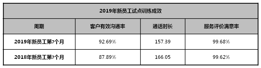 表1 2019年新员工试点训练成效