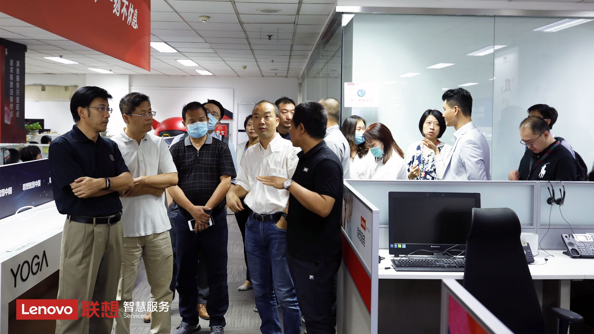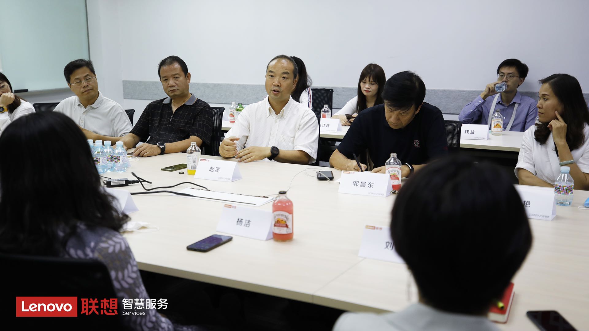 联想消费服务事业部总经理杨洁女士、联想智能在线服务平台高级经理任海波女士、联想智慧客服魔方产品负责人张文谱先生、联想消费服务客户体验经理张雪芳女士、联想消费服务营销推广高级经理刘俊女士、联想消费PC在线服务交付高级经理张笑先生、联想消费智能设备在线服务交付经理纪冉先生等接待评审团考察,并就联想智慧服务的整体运营情况及运营管理特色进行了详细的介绍和充分的交流。